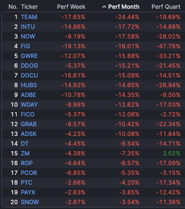 Take a look at some top SaaS names and their recent performance: