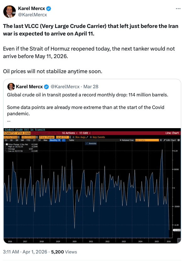 Step back, and the pattern comes into focus. COVID distorted the system. The Red Sea rerouted the system. Hormuz now threatens to break the system.
